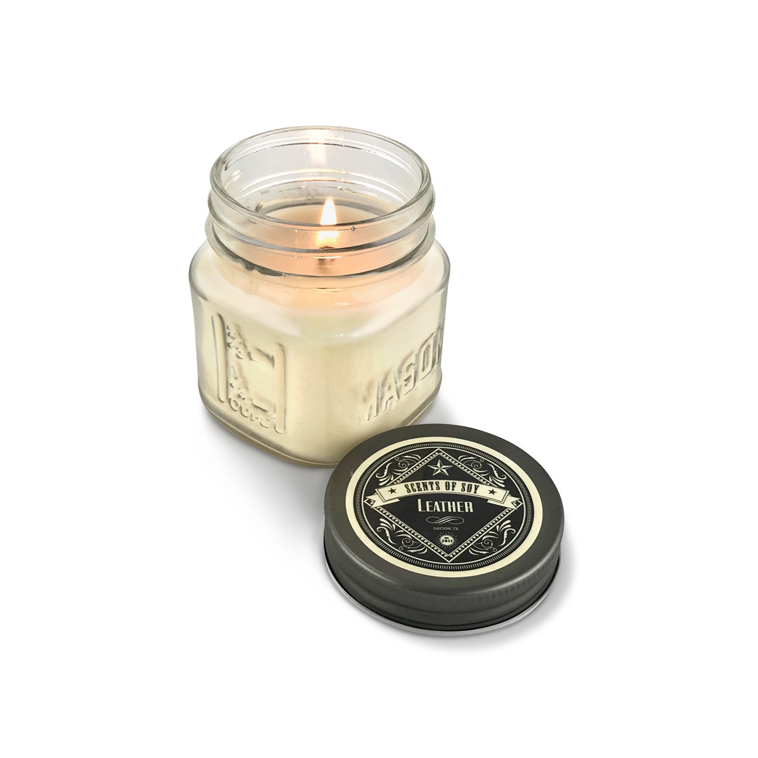 Glass embossed container with galvanized rustic lid with black and cream label.